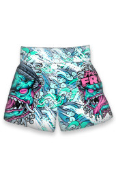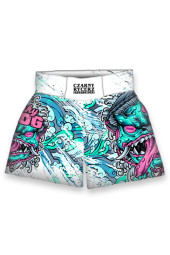 Spodenki do Kickboxingu wykonane z mega lekkiej tkaniny poliestrowej zapewniającej idelny komofrt treningu oraz walki. W pasie spodenki posiadają szeroką wytrzymałą gumę gwarantującą idelane dopasowanie. Nadruk wykonany wysokiej jakości sublimacją gwarantującą żywe kolory jak i unikatowe wzornictwo.