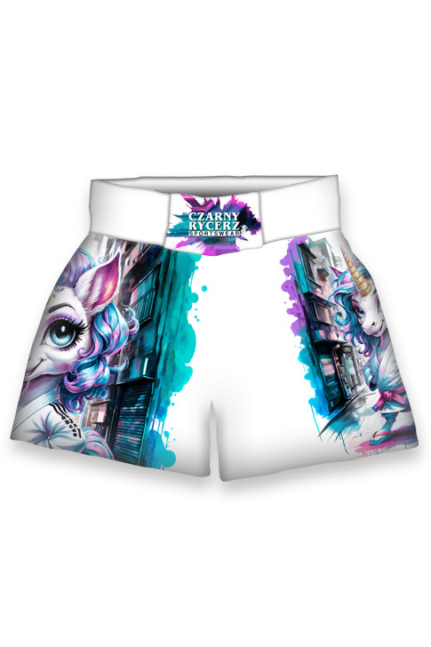 Spodenki do Kickboxingu wykonane z mega lekkiej tkaniny poliestrowej zapewniającej idelny komofrt treningu oraz walki. W pasie spodenki posiadają szeroką wytrzymałą gumę gwarantującą idelane dopasowanie. Nadruk wykonany wysokiej jakości sublimacją gwarantującą żywe kolory jak i unikatowe wzornictwo.
