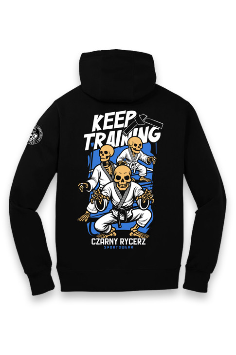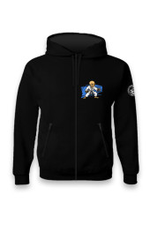 Czarna Bluza z kapturem i zamkiem wykonana z grubej bawełny 340g, nadruk wykonany wysokiej jakości sitodrukiem.