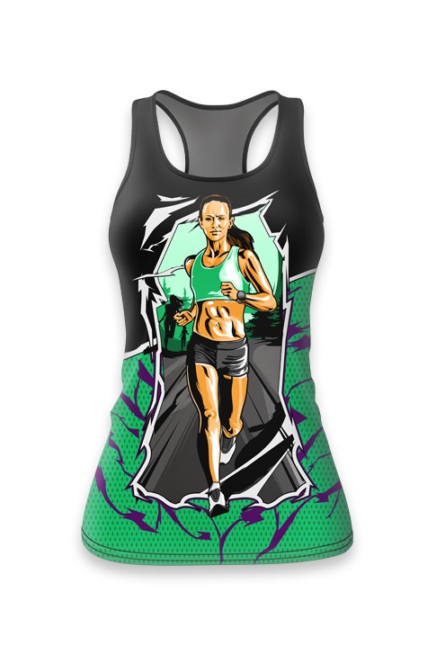 Tank Top wykonany z lekkiej i przewiewnej tkaniny poliestrowej. Nadruk wykonany sublimacją trwałą i niezniszczalną.