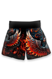 Spodenki wykonane z mega lekkiej tkaniny poliestrowej zapewniającej idealny komfort treningu oraz walki. W pasie spodenki posiadają szeroką wytrzymałą gumę gwarantującą idealne dopasowanie. Nadruk wykonany wysokiej jakości sublimacją gwarantującą żywe kolory jak i unikatowe wzornictwo.