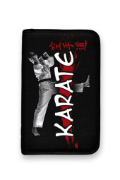 Duży piórnik szkolny Karate wykonany z trwałych materiałów i nadrukiem sublimacyjnym.