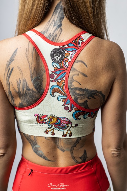 Top damski do biegania oraz aktywności fizycznej wykonany z wysokiej jakości tkaniny poliestrowej 87% z dodatkiem elastanu 13%